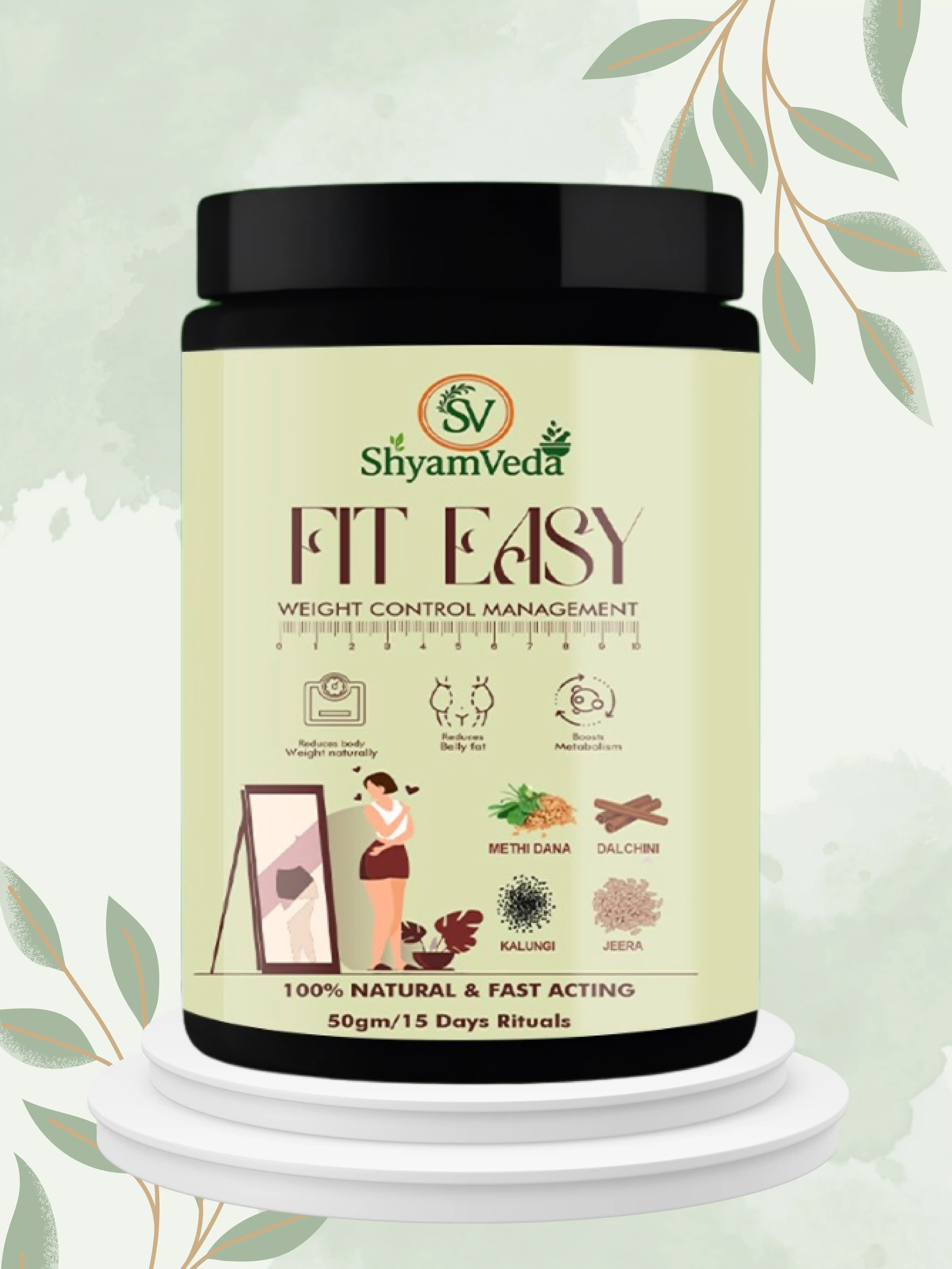 Fit Easy Weight Control Management – 60 Capsules by Shyamveda is a premium Ayurvedic supplement thoughtfully formulated to support natural weight balance, boost metabolism, and improve digestive wellness. Crafted with a powerful blend of herbs including Guggul, Triphala, Garcinia Cambogia, and Green Tea Extract, each capsule works synergistically to promote fat metabolism, reduce cravings, and aid detoxification. This plant-based formula is free from harmful chemicals, preservatives, and artificial fillers, making it safe and gentle for long-term use. With its anti-inflammatory and digestive-supporting properties, Fit Easy helps regulate appetite, enhance nutrient absorption, and support a healthy lifestyle. Ideal for both men and women, Fit Easy is suitable for daily use and is designed to complement your wellness routine—whether you're looking to manage weight naturally or support overall vitality. Manufactured in GMP-certified facilities, it reflects Shyamveda’s commitment to purity, quality, and the time-honored science of Ayurveda. Empower your body from within with Fit Easy Weight Control Management – a natural path to balanced weight, renewed energy, and holistic health.